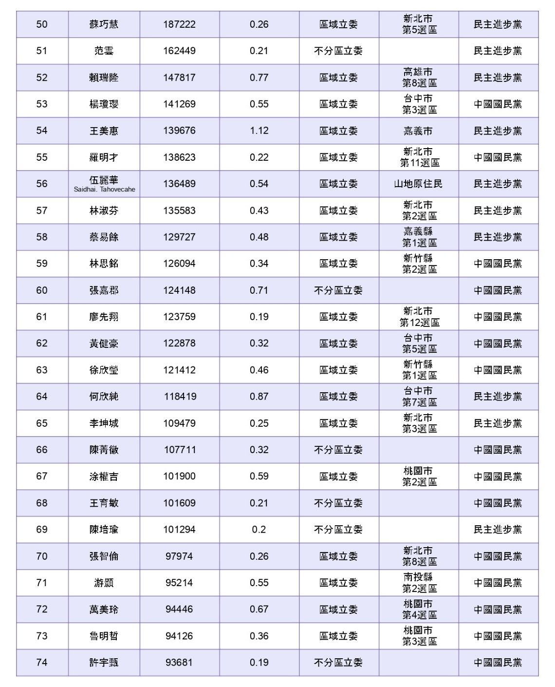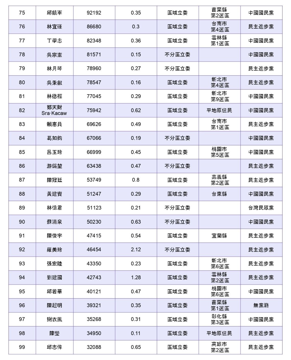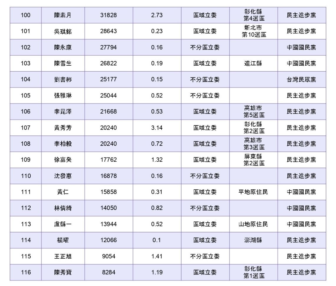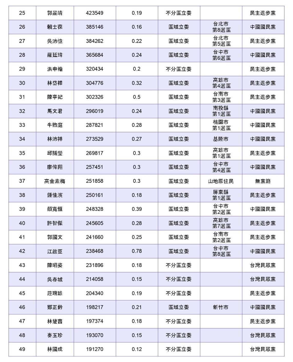 柯建銘 | 不分區(民進黨) | 民主進步黨 | 2,615,498 | 0.14 |